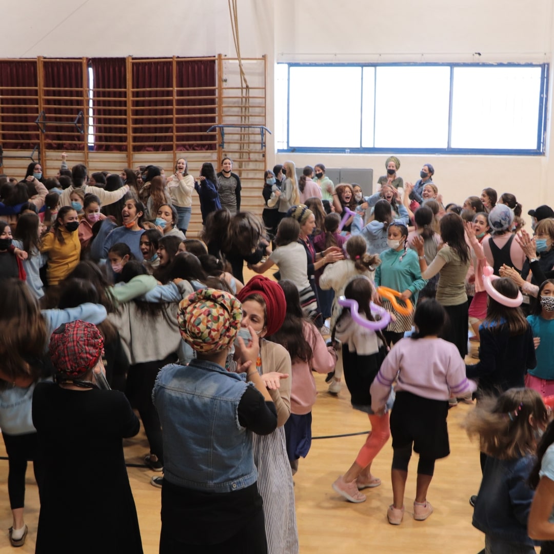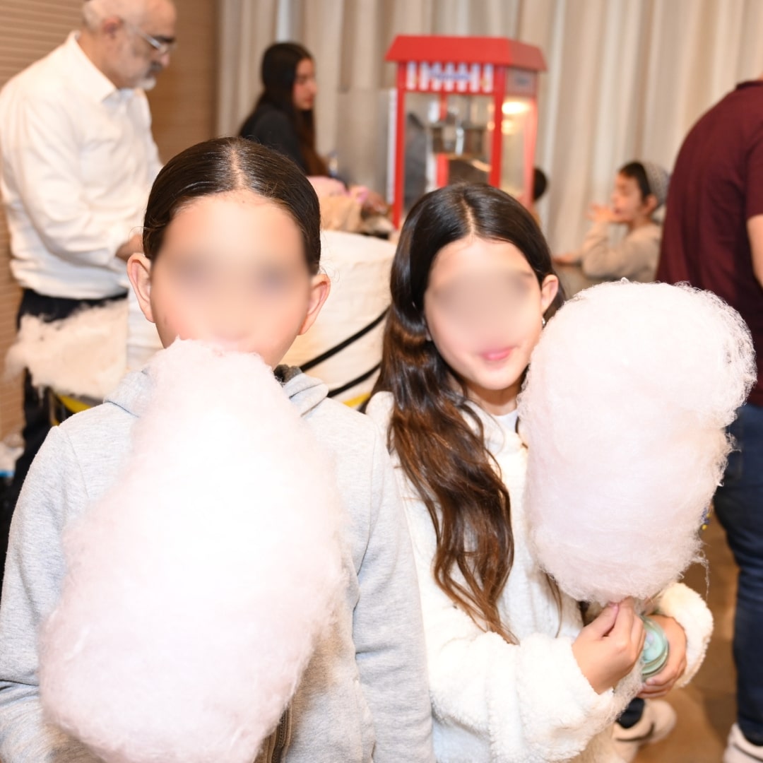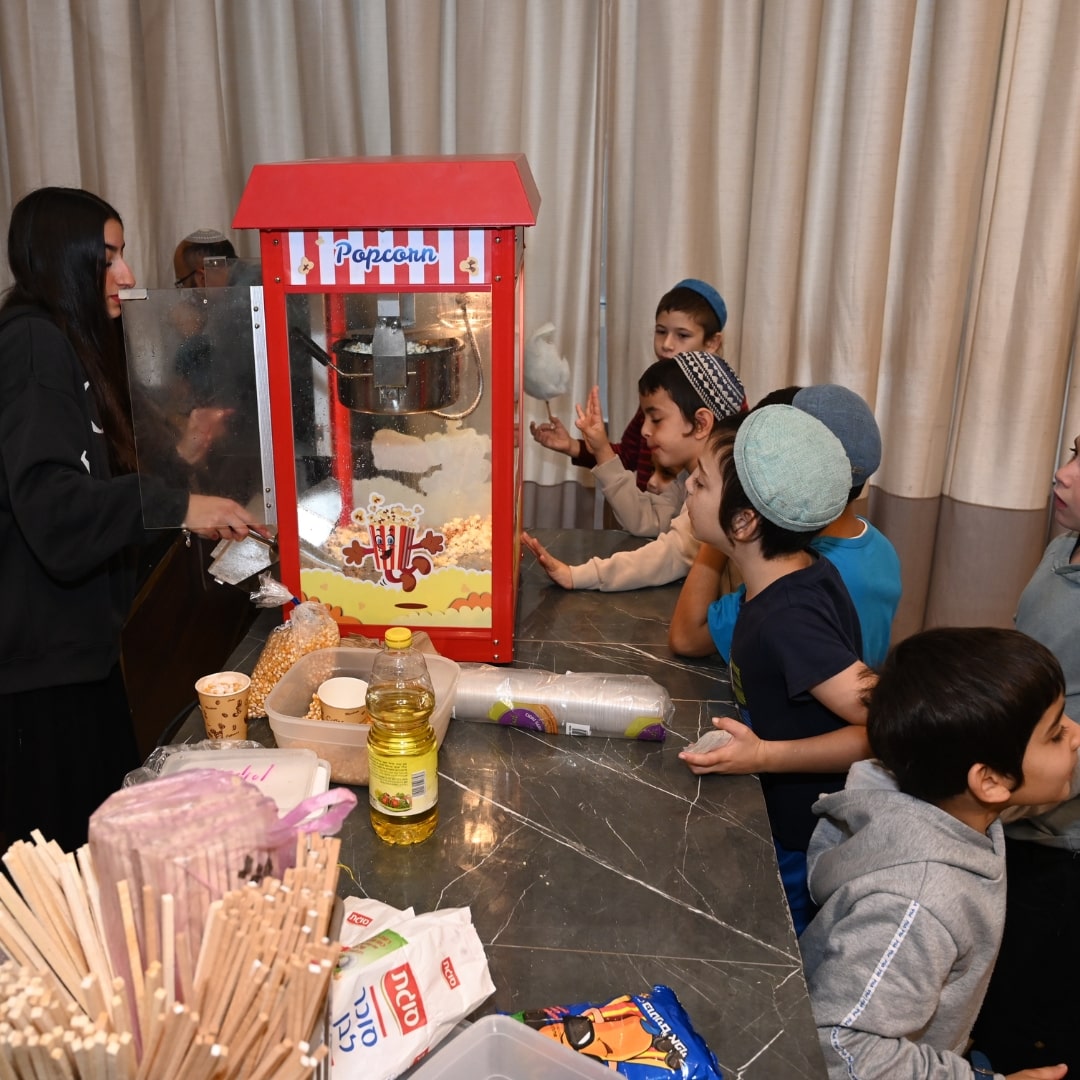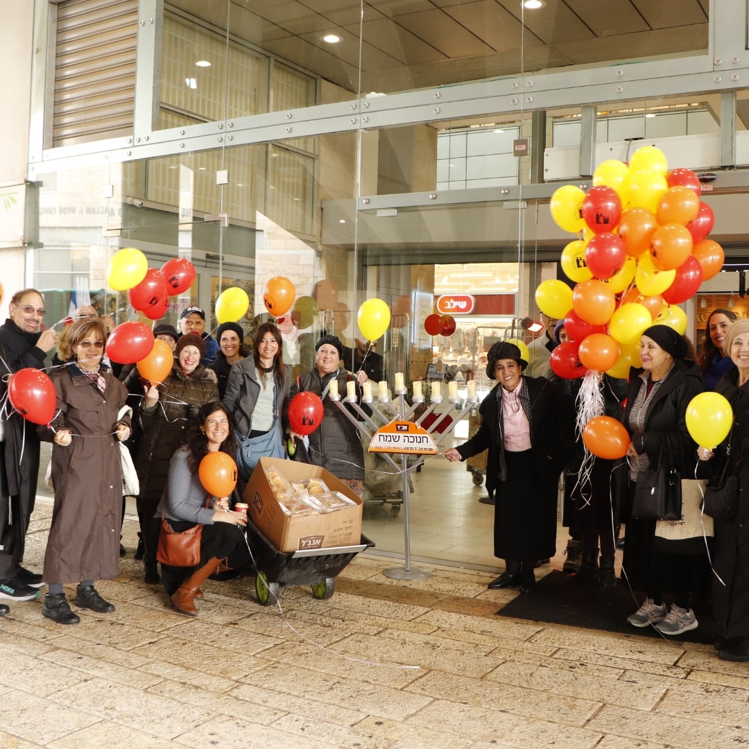We will create a giant Hanukkah menorah made of balloons in orange, red, and yellow, along with a matching tent filled with delicious sufganiyot (doughnuts) and olive oil—enough to last all eight nights of Hanukkah.