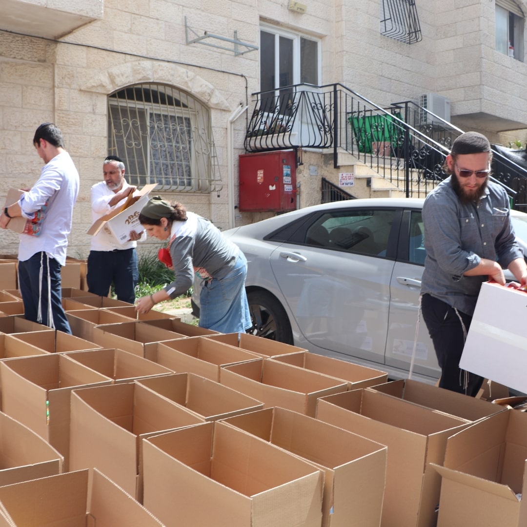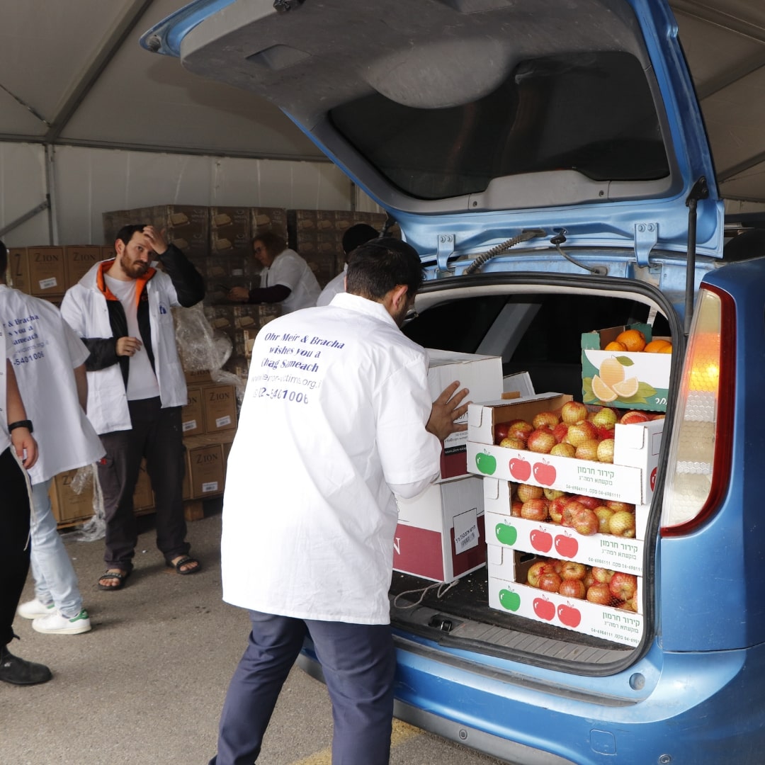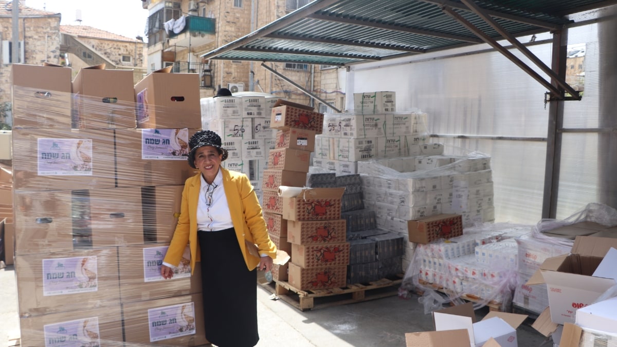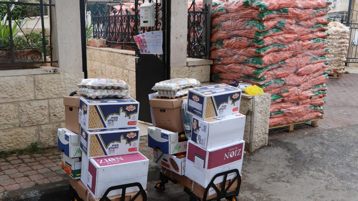 2 sets of dishes, 2 packages of matzah, 2 trays of eggs, grape juice, chickens, a sack of potatoes, carrots, apples, oranges, bananas—and many more essentials.