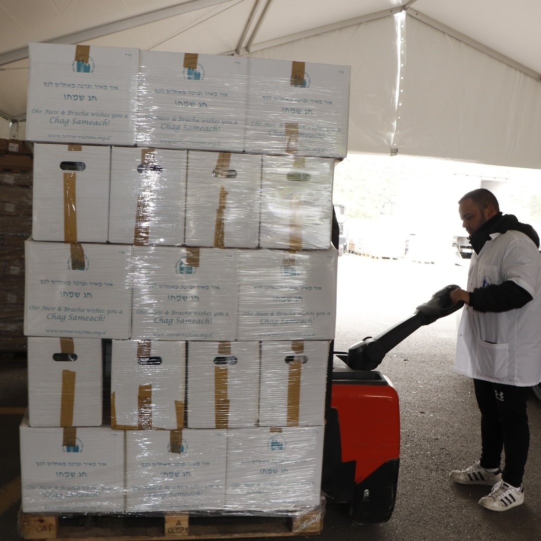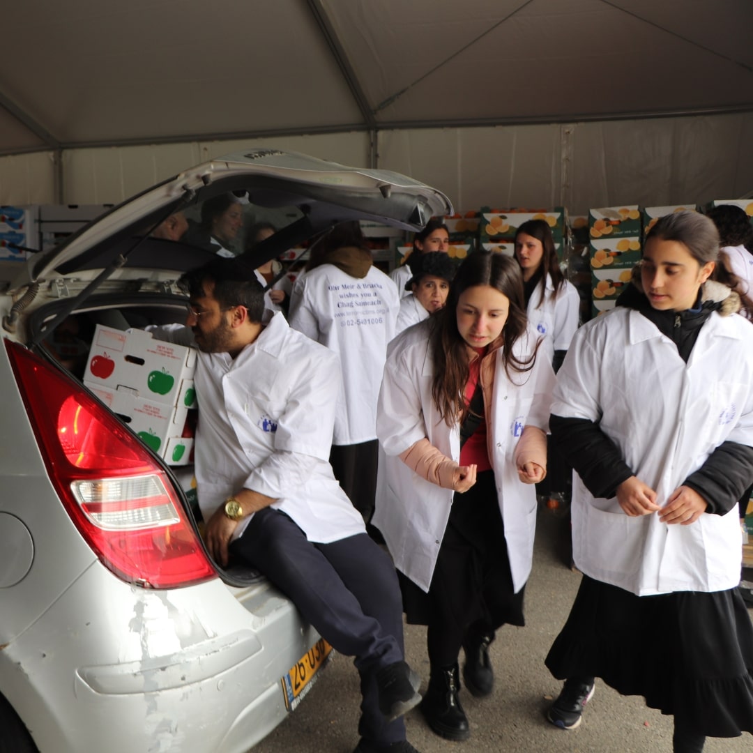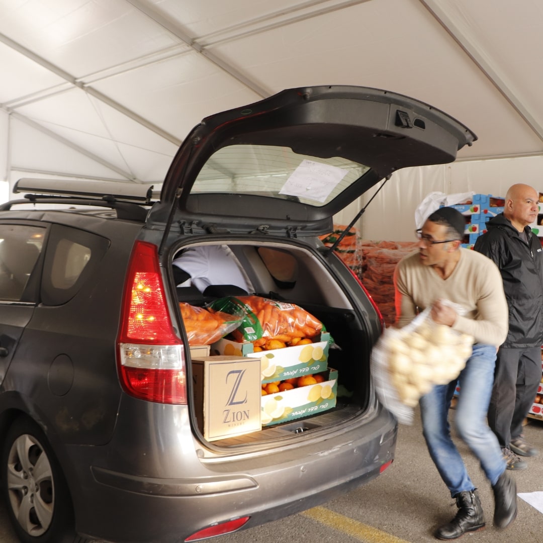 2 sets of dishes, 2 packages of matzah, 2 trays of eggs, grape juice, chickens, a sack of potatoes, carrots, apples, oranges, bananas—and many more essentials.