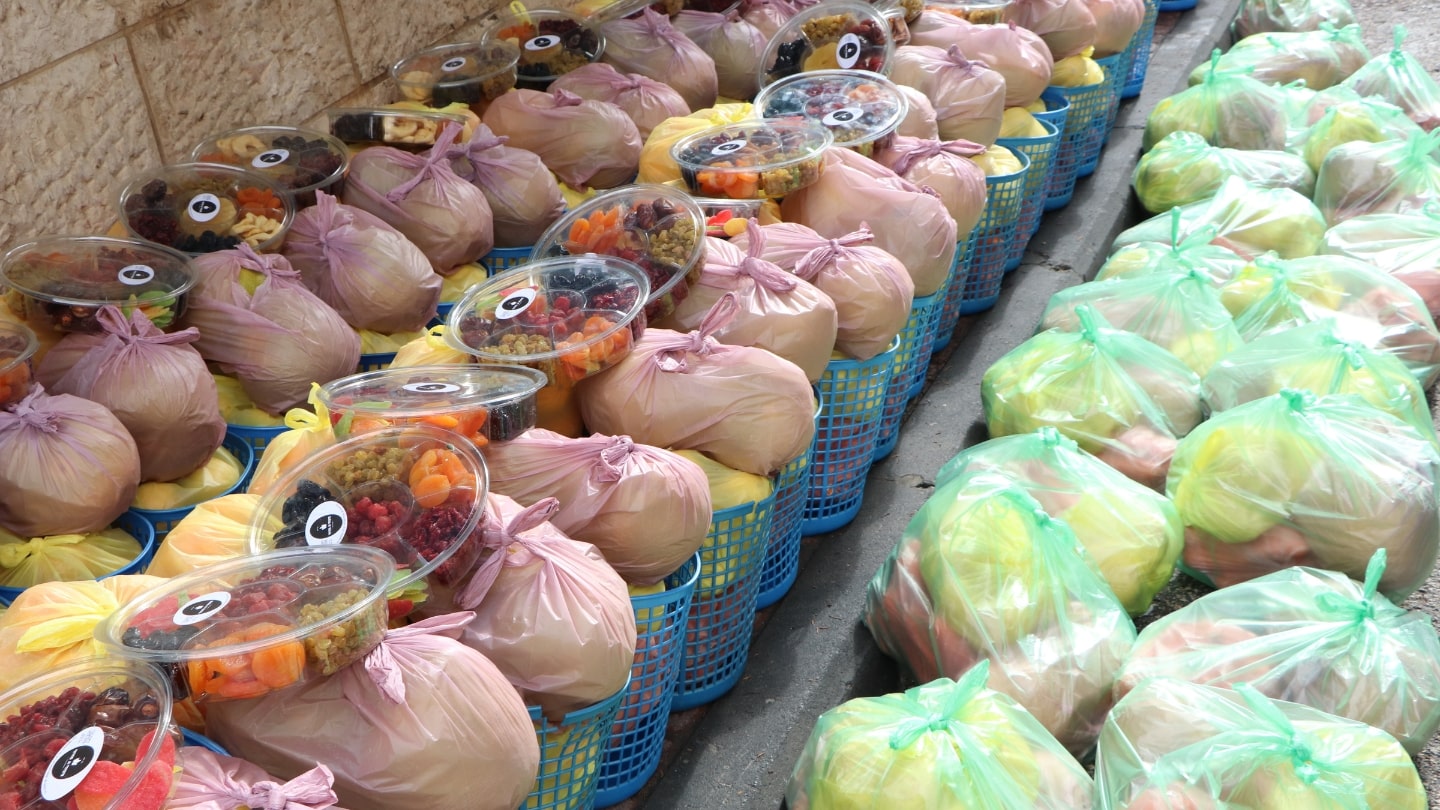 Each family will receive a large, abundant basket filled with fresh fruits and vegetables, poultry, bread, and essential dry goods, including sugar, salt, rice, oil, flour, cookies, and more.